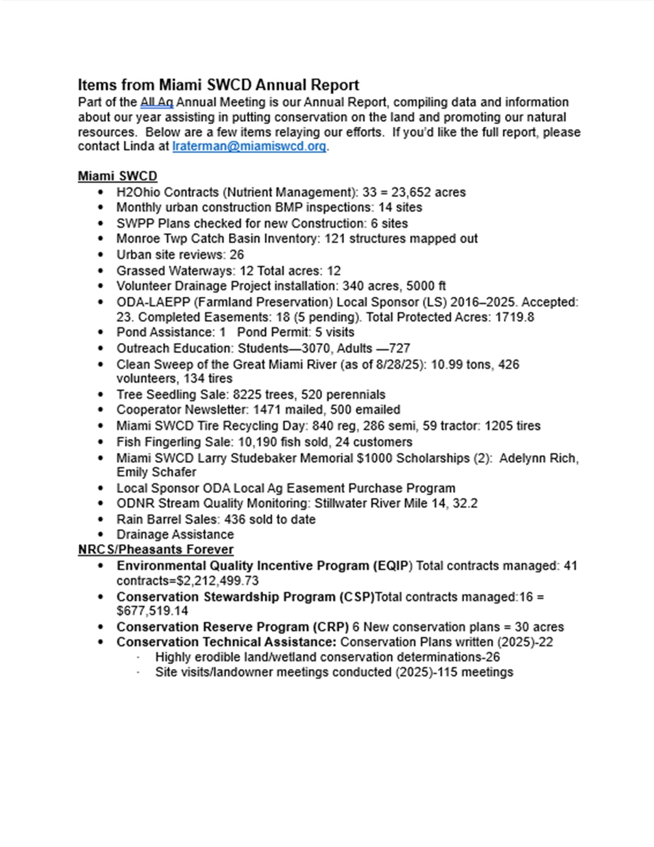 As an organization our goal is to be responsible leaders in promoting innovative stewardship of natural resources through the development of conservation partnerships to enhance the quality of life for those in Miami County, Ohio.