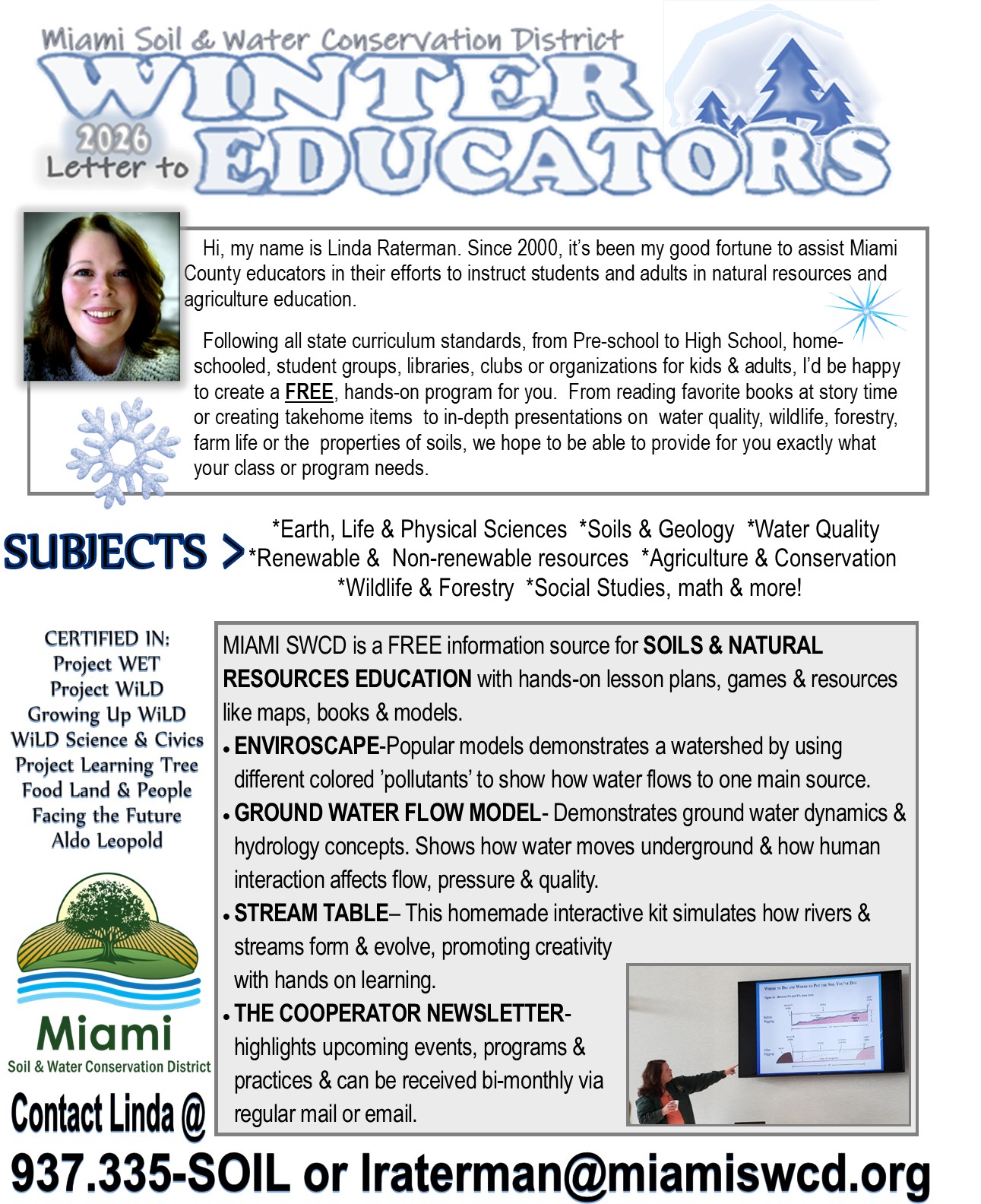 This bi-annual publication relays information to the Miami County Educator about what free programs are available to them and offers news related to natural resources education.